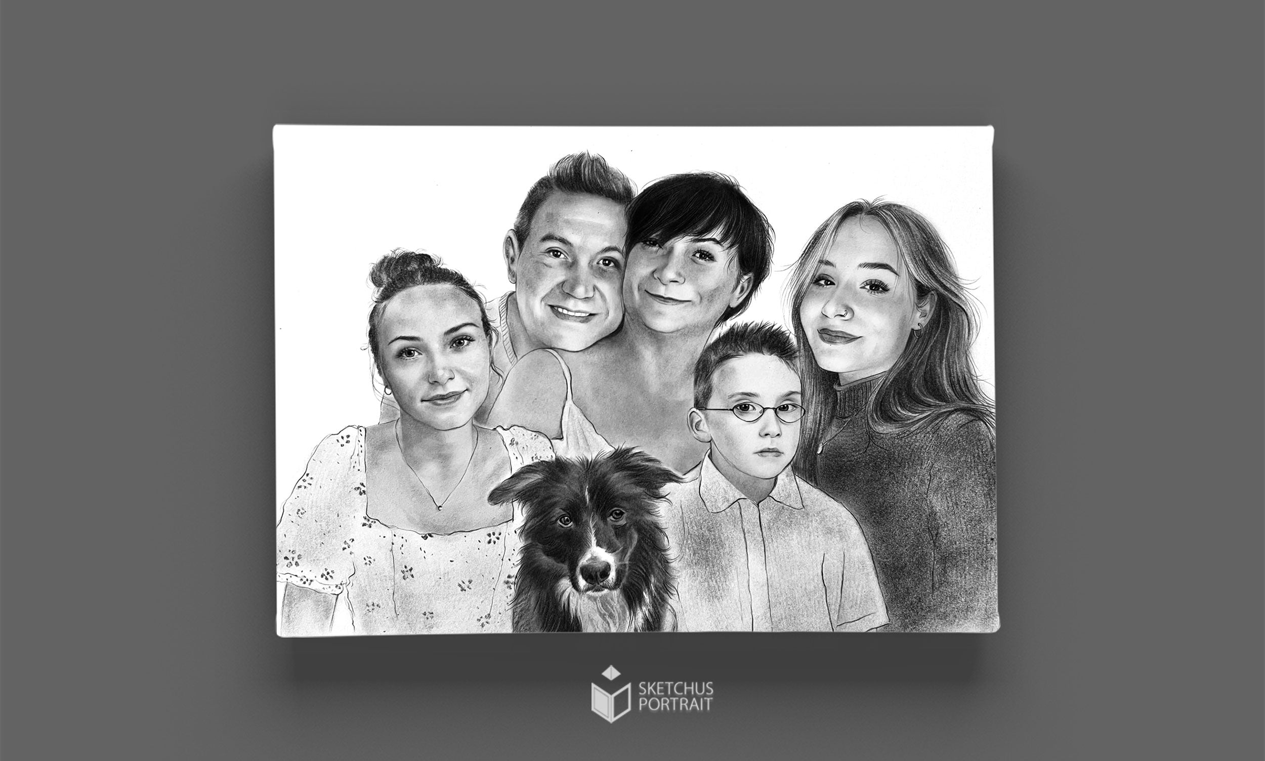 The Sketchus team specializes in combining images from different templates into a complete work of art. We would be happy to help you create a special moment where the feeling and the scene seem as if it were real. Before each hand drawing, we discuss together which aspect, which template is suitable for the exact positioning of the people (animals), a before and after comparison.
