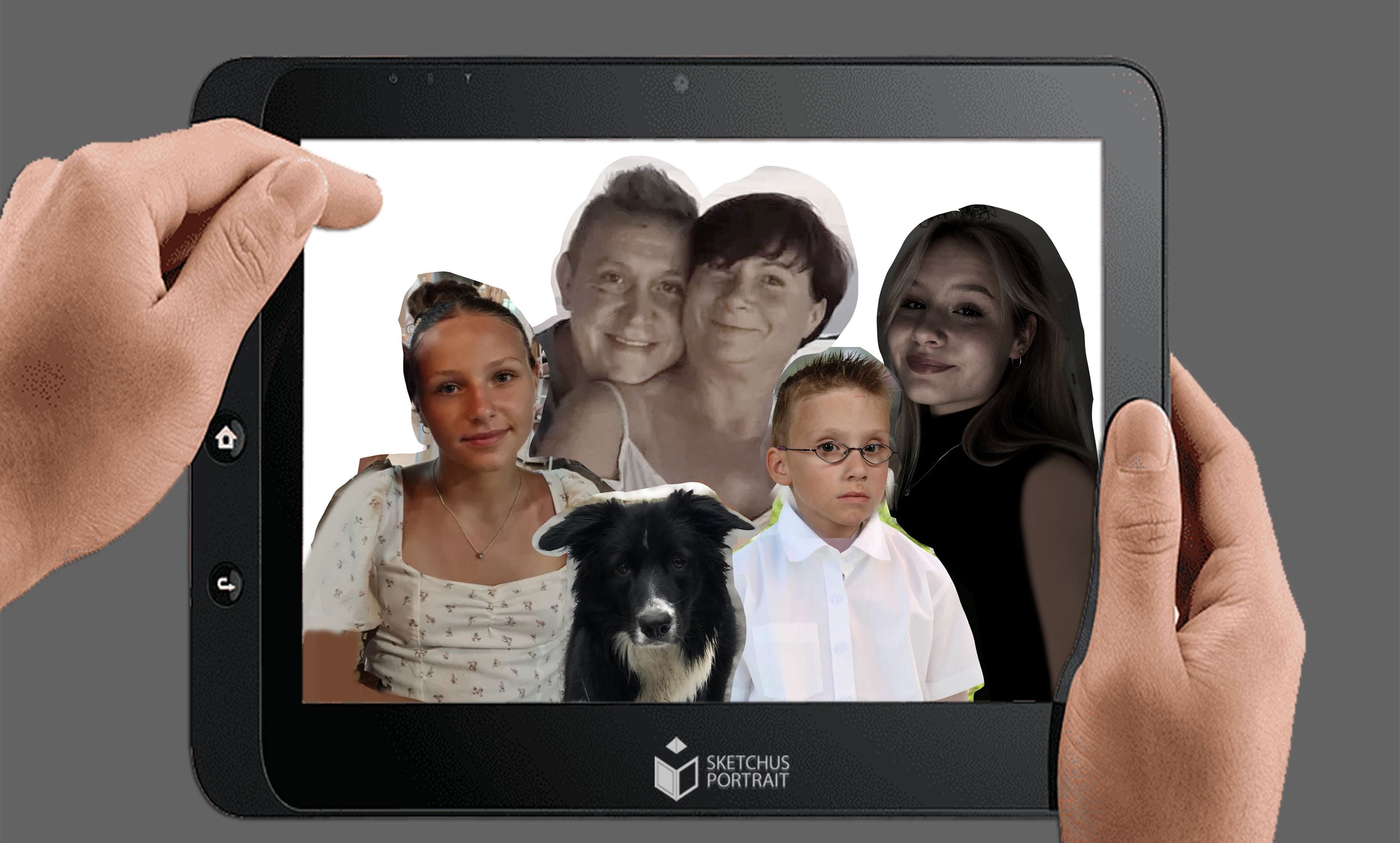 • Bild malen lassen mit Verstorbenen - Kombination mehrerer Foto bei Sketchus